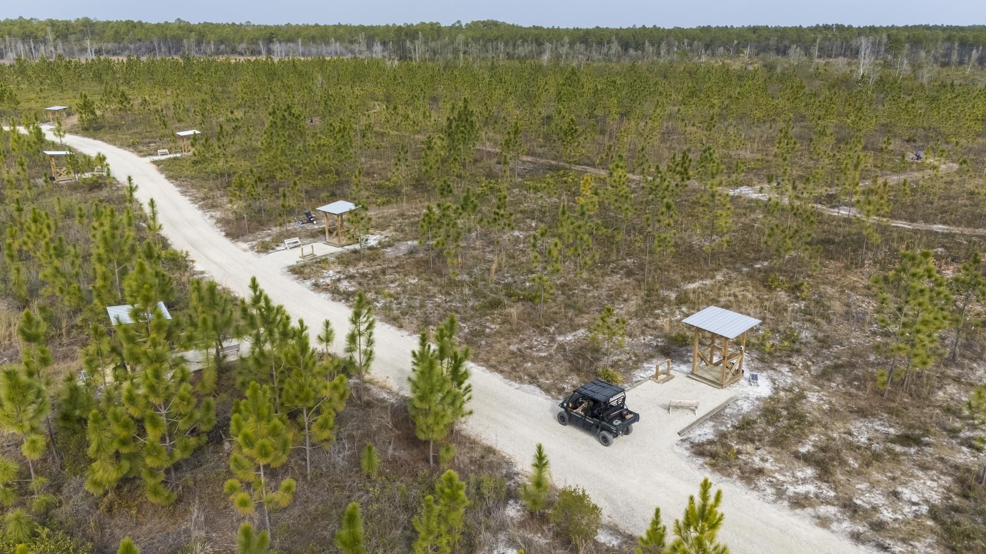 The sporting clays course is part of the Watersound Club Sporting Preserve, located just beyond Shark’s Tooth Golf Course. Watersound Inn guests begin their experience by checking in at Shark’s Tooth, where transportation to the course is provided via off-road side-by-side vehicles for a short scenic ride.